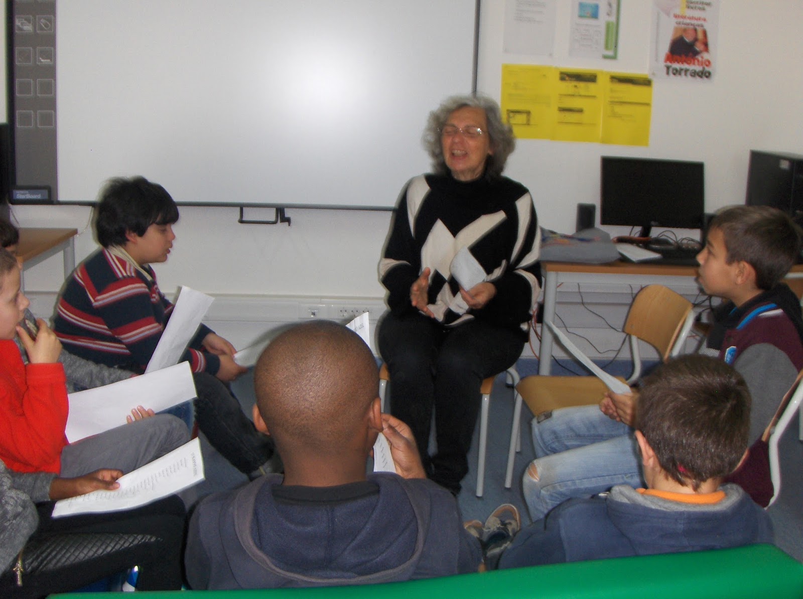 Todos tentavam descobrir as casas das personagens, em que lugares andavam, e encontrar palavras do texto que rimavam.