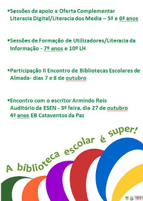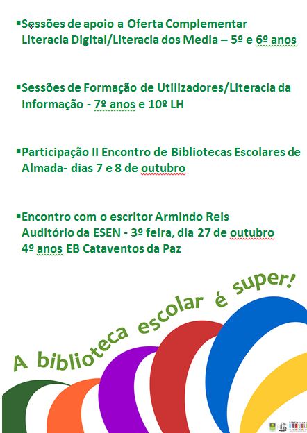. Participação no 1º Encontro de Bibliotecas Escolares do Concelho de Almada - 17 e 18 de outubro, no auditório Fernando Lopes Graça